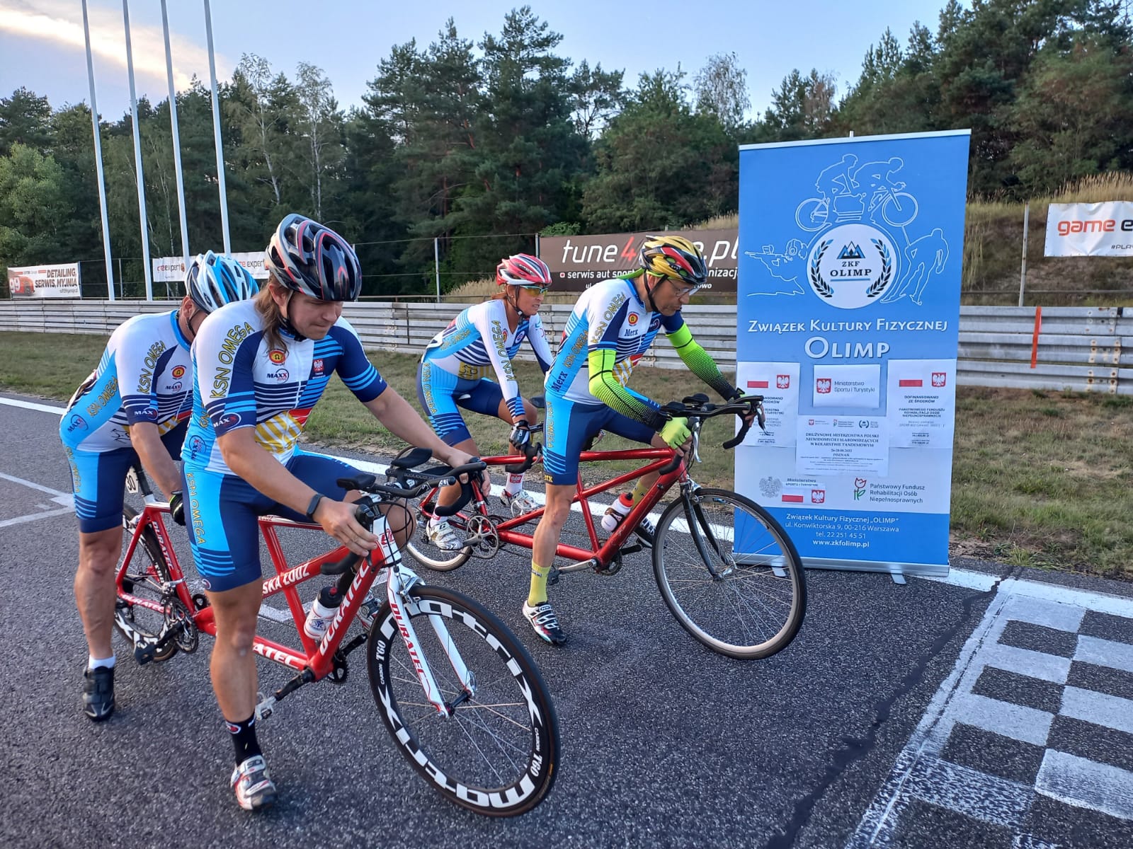 Po emocjonujących Indywidualnych Mistrzostwach Polski rozegranych w Małopolsce, tandemowe załogi nie miały wiele czasu na odpoczynek. Już po jednym dniu przerwy przeniosły się na Podlasie, gdzie w dniu 29 czerwca rywalizowały w Drużynowych Mistrzostwach Polski w jeździe na czas. Trasa była wymagająca – długie proste, odcinki pod wiatr i techniczne nawroty sprawiły, że oprócz samej mocy liczyła się także współpraca w drużynie i perfekcyjna zmiana rytmu. Rywalizacja kobiet przyniosła zdecydowane zwycięstwo ekipy KSN Omega Łódź w składzie: Monika Grzybczyńska / Karolina Karasiewicz (pilotka) Ewa Podlińska / Sylwia Jadczyk (pilotka). Od początku narzuciła wysokie tempo i potwierdziła swoją dominację na krajowych szosach. Zgranie zawodniczek i równy rytm jazdy pozwoliły im sięgnąć po tytuł Mistrzyń Polski. Tegoroczne Drużynowe Mistrzostwa Polski potwierdziły, że poziom polskiego kolarstwa tandemowego systematycznie rośnie. Zespoły prezentują coraz lepsze przygotowanie, a walka o medale staje się coraz bardziej wyrównana. Szczególnie w wyścigach mężczyzn różnice czasowe były niewielkie, co zapowiada emocjonującą rywalizację również w kolejnych imprezach sezonu. Tegoroczna rywalizacja mężczyzn pokazała, jak wysoki poziom prezentują polskie tandemy. Trasa na Podlasiu nie wybaczała błędów – długie odcinki pod wiatr i techniczne nawroty wymagały zarówno siły, jak i doskonałego zgrania w drużynie. Na trasie znakomicie zaprezentowała się męska ekipa KSN Omega Łódź w składzie: Michał Ciborski / Kazimierz Dubas(pilot) oraz Jakub Jóźwiak / Jakub Baranowski (pilot), która ambitnie walczyła o jak najwyższą lokatę. Ostatecznie zakończyła zmagania na 6. miejscu ex aequo, co potwierdza, że należą do ścisłej czołówki krajowej i mogą realnie myśleć o jeszcze lepszych wynikach w kolejnych sezonach.