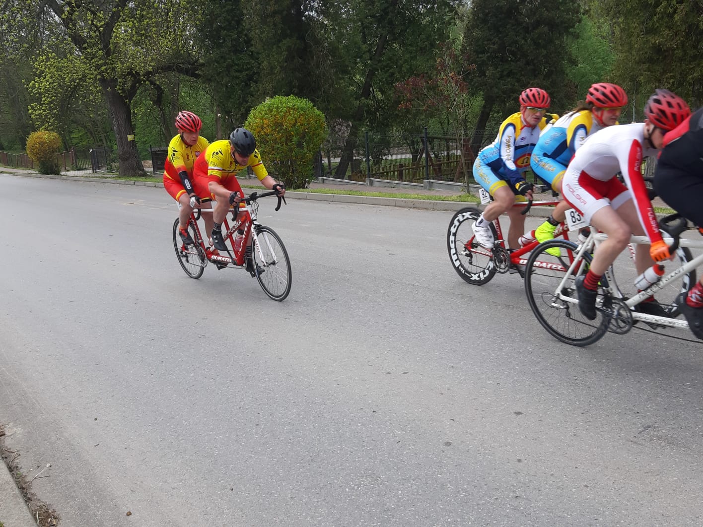Ostatnim poważnym sprawdzianem formy przed zbliżającymi się mistrzostwami Polski był rozegrany w Koziegłowach Puchar Polski w kolarstwie szosowym. Choć impreza w dużej mierze skierowana była do młodszych kategorii wiekowych, dzięki otwartości organizatorów w peletonie pojawiły się także tandemy. Obecność tych wyspecjalizowanych duetów dodała rywalizacji kolorytu i przypomniała, że kolarstwo to nie tylko indywidualna walka z czasem i rywalami, ale również sport oparty na współpracy, pełnym zaufaniu i wzajemnym zrozumieniu. Już pierwszego dnia zawodów tandemowi kolarze stanęli do rywalizacji w jeździe indywidualnej na czas. Sama trasa nie należała do najbardziej wymagających technicznie, lecz pogoda zafundowała wszystkim prawdziwy sprawdzian charakteru. Ulewa, śliska nawierzchnia i ograniczona widoczność sprawiły, że każdy kilometr stawał się podwójnym wyzwaniem. W tych trudnych realiach Jakub Jóźwiak wraz z pilotem Jakubem Baranowskim (Omega Łódź) zaprezentowali solidną, równą jazdę, plasując się na szóstym miejscu. Rezultat może nie zwracał uwagi na pierwszy rzut oka, ale w kontekście ekstremalnych warunków pogodowych miał ogromną wartość – liczyły się przede wszystkim doświadczenie, odporność i konsekwencja. Niedzielny wyścig ze startu wspólnego miał już zupełnie inny charakter – emocje sięgnęły zenitu, a pogoda, choć wciąż kapryśna, nie była już tak bezwzględna jak dzień wcześniej. Od pierwszych kilometrów dało się jednak zauważyć, kto będzie rozdawał karty. Tandem Wójcik – Podlaski ruszył do przodu natychmiast po starcie i narzucił takie tempo, że rywale mogli jedynie oglądać ich plecy. Na mokrej, krętej i pagórkowatej trasie ich jazda była popisem pewności, siły i wzajemnego zgrania – przewaga rosła z każdym kilometrem. Najwięcej dramaturgii przyniosła walka o czwarte miejsce. Tandem Śmiech – Lemieszek długo utrzymywał bezpieczną, blisko minutową przewagę nad ekipą Jóźwiak – Baranowski. Jednak sport, zwłaszcza na szosie, bywa nieprzewidywalny. Kamień na drodze i pechowy defekt wymusiły wymianę koła, a każda sekunda w takich momentach boli podwójnie. Szansę wykorzystali kolarze Omega Łódź, którzy dzięki konsekwentnej jeździe zdołali wskoczyć tuż za podium. Choć aura nie rozpieszczała zawodników, w Koziegłowach nie zabrakło tego, co w kolarstwie najpiękniejsze – pasji, charakteru i walki do samego końca. Tandemowe kolarstwo, często niedoceniane i traktowane jako ciekawostka, pokazało tu swoje prawdziwe oblicze. To nie tylko sport wymagający ogromnej siły i wytrzymałości, ale też zaufania bez reszty. Każdy ruch, każdy zakręt i każdy finisz muszą być zsynchronizowane. Pilot i zawodnik tworzą jeden organizm – sukces możliwy jest tylko wtedy, gdy obaj myślą i czują to samo. Puchar Polski w Koziegłowach udowodnił, że tandemowe kolarstwo potrafi dostarczyć ogromnych emocji – zarówno zawodnikom, jak i kibicom. Był to nie tylko test formy przed mistrzostwami kraju, ale także piękny pokaz tego, że w sporcie liczy się nie tylko wynik, ale i duch współpracy, determinacja oraz bezgraniczne zaufanie do partnera na rowerze.